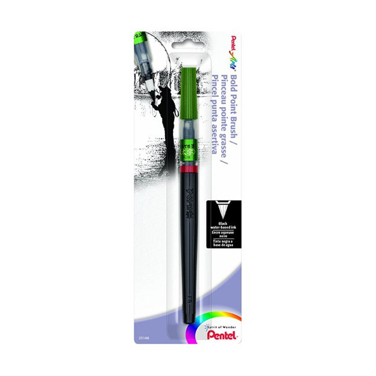 The Pentel Brush Pen Bold Point's water-based dye ink dries quickly and produces rich, black tones. Ideal for creating subtle shading and translucent effects, the durable nylon brush tip holds its point. A portable alternative to traditional brushes and inks.